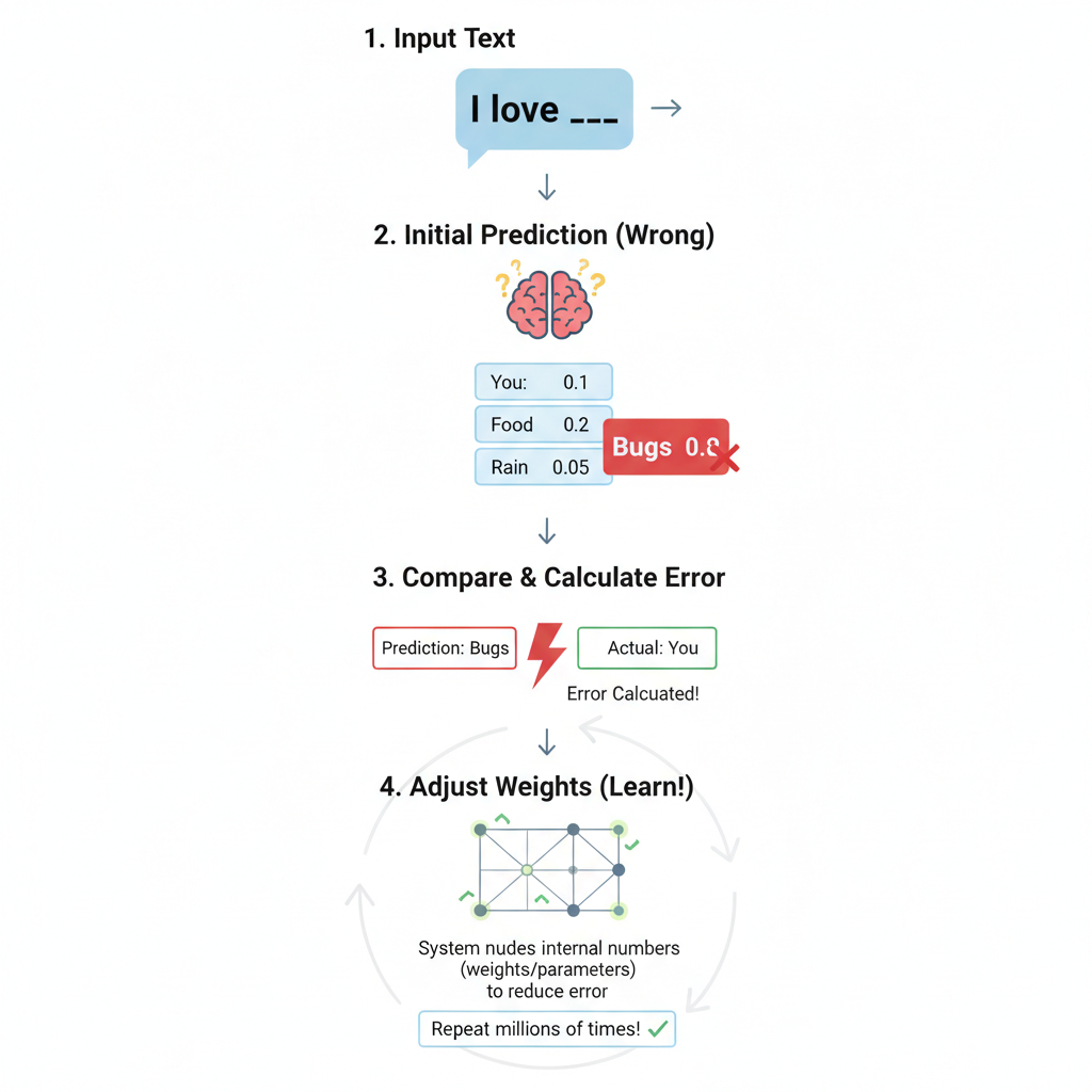 With this, it becomes clear why people say a model has 7 billion parameters — it simply means there are 7 billion learned numbers shaping its behavior.